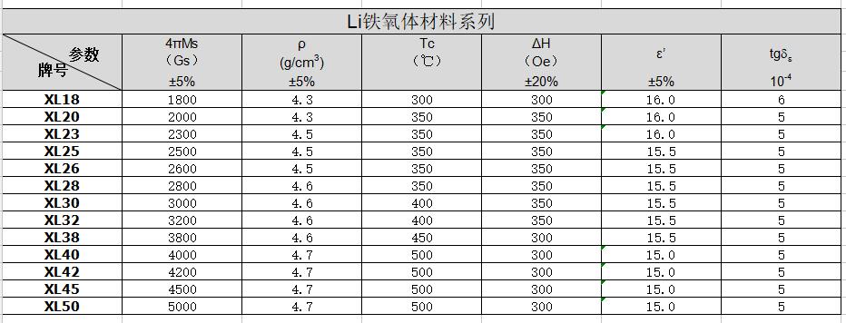 锂铁氧体质料系列应用于低消耗的同轴、带线环行器、隔离器等。